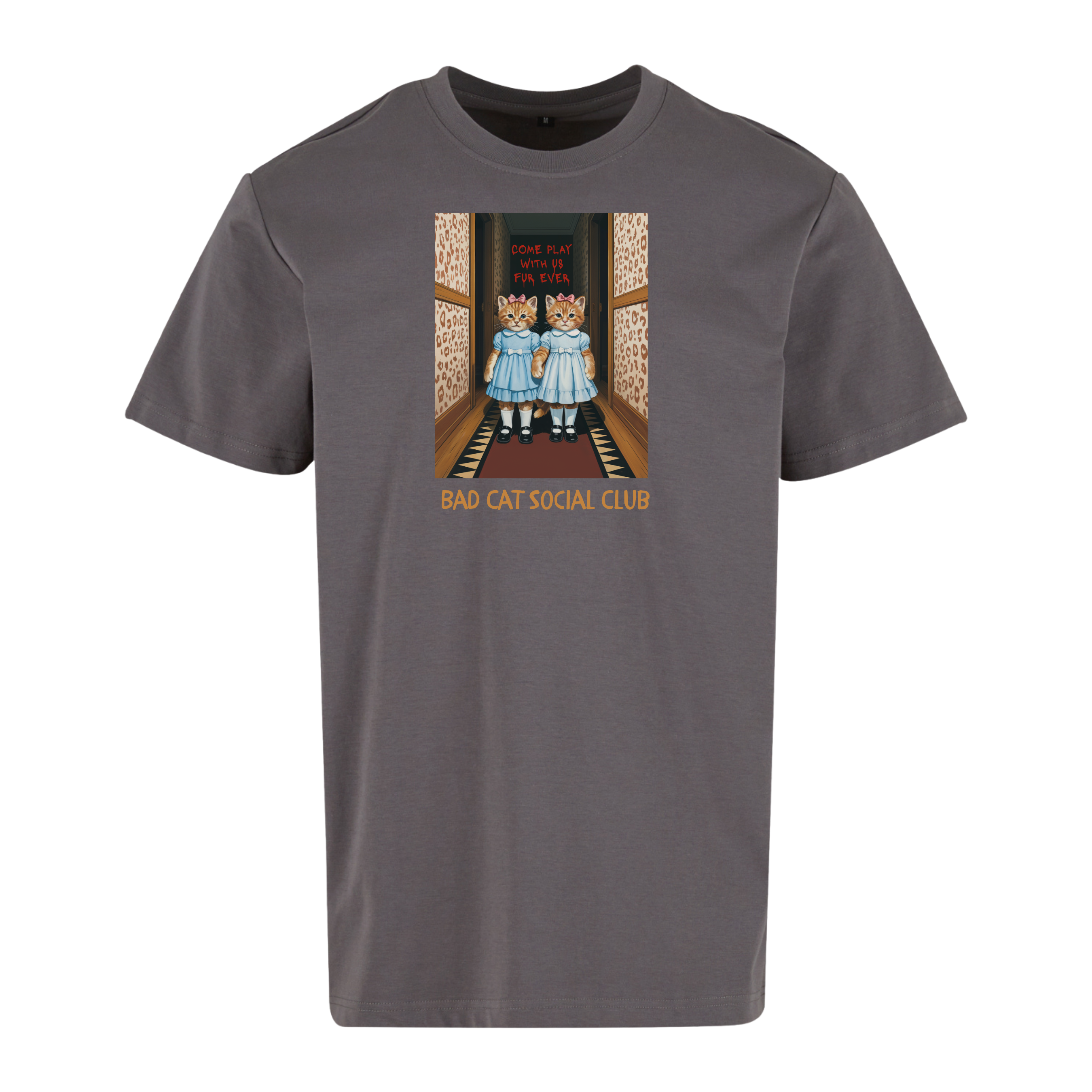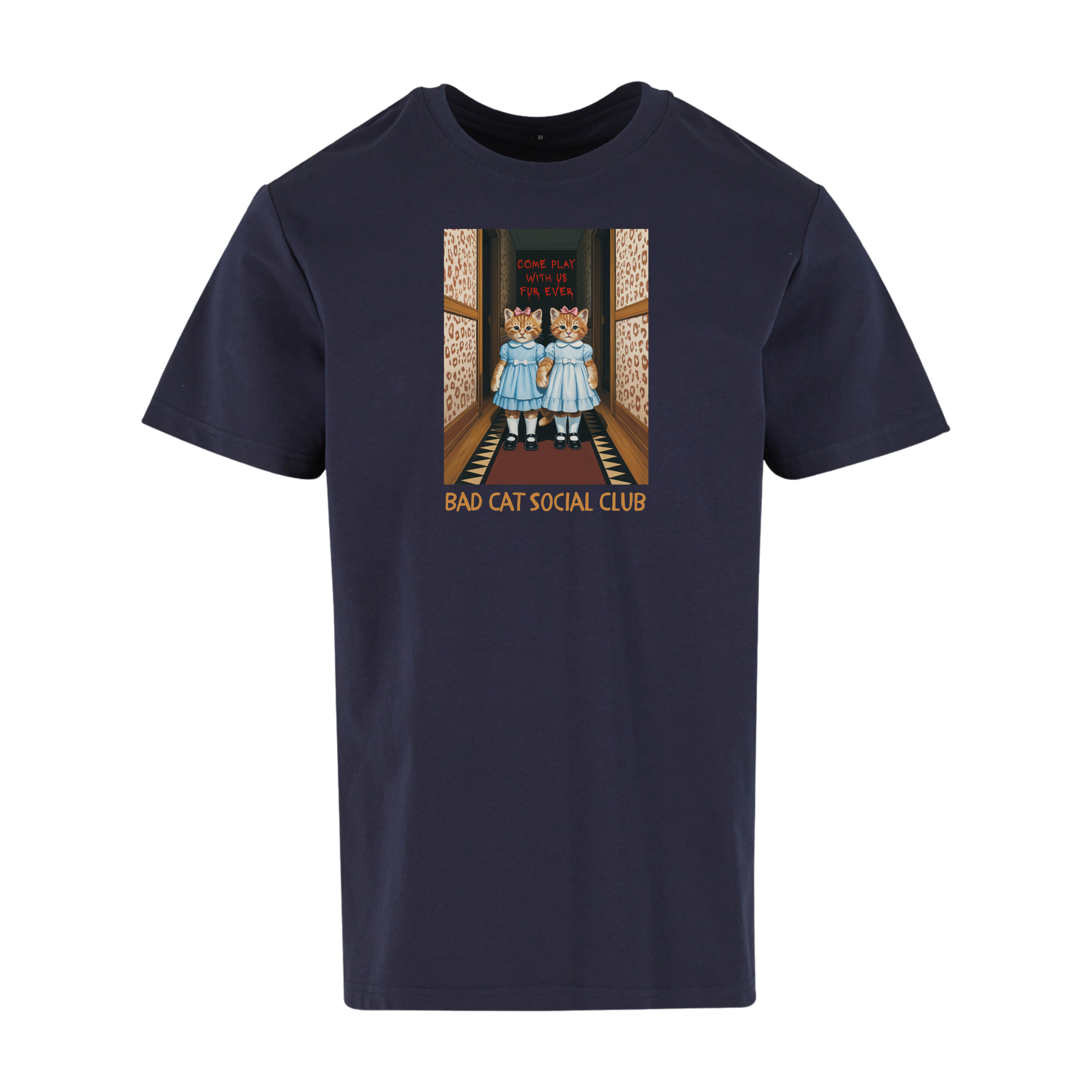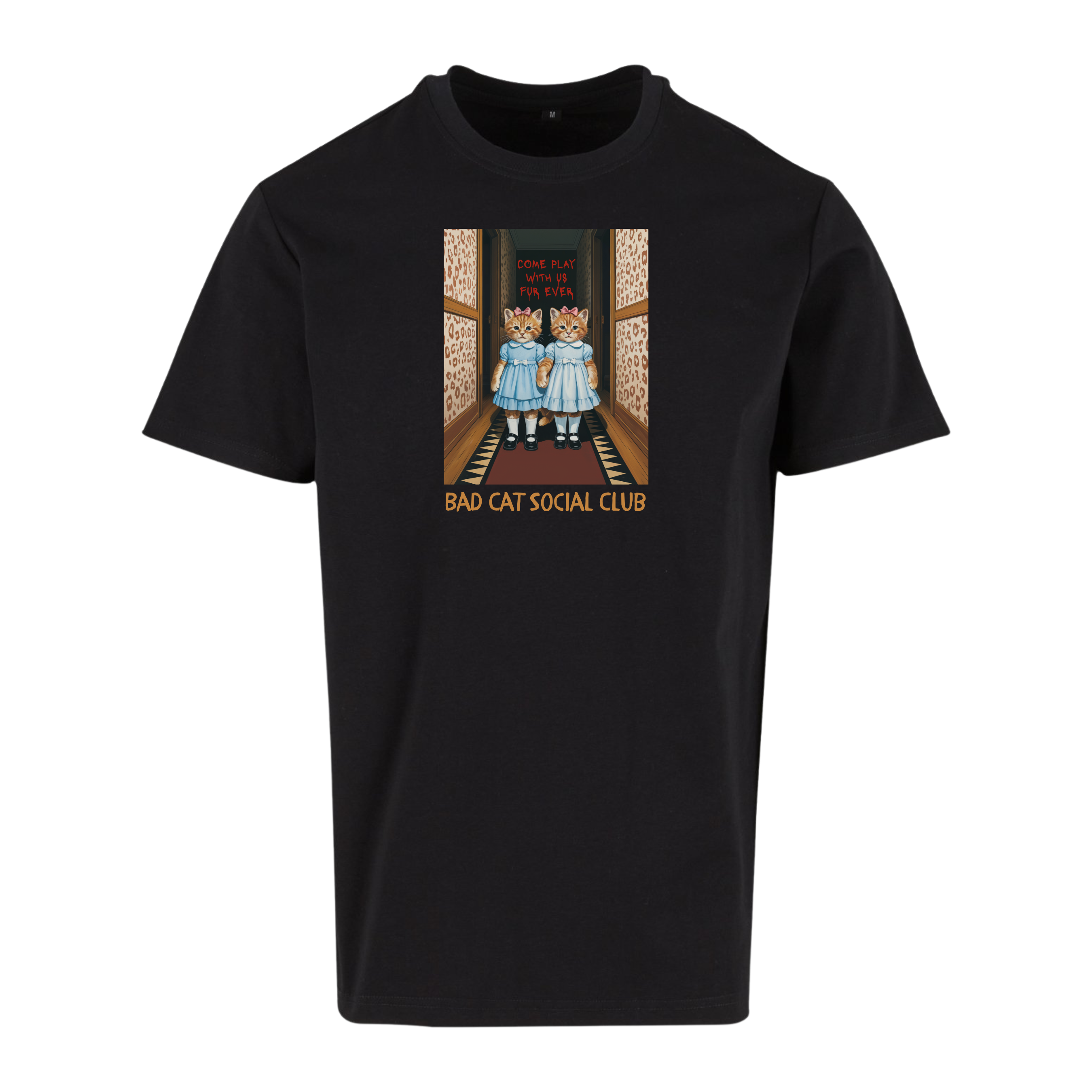 Step into the spotlight with this retro-inspired T-shirt, featuring a playful twist on the iconic twins from The Shining. Bold, vibrant colors and nostalgic details give this design a fun and cheeky vibe, perfect for fans of classic horror with a sense of humor. Whether you're channeling vintage style or just love a clever pop culture reference, this shirt is sure to turn heads and spark conversations—all with a wink to cinematic history!